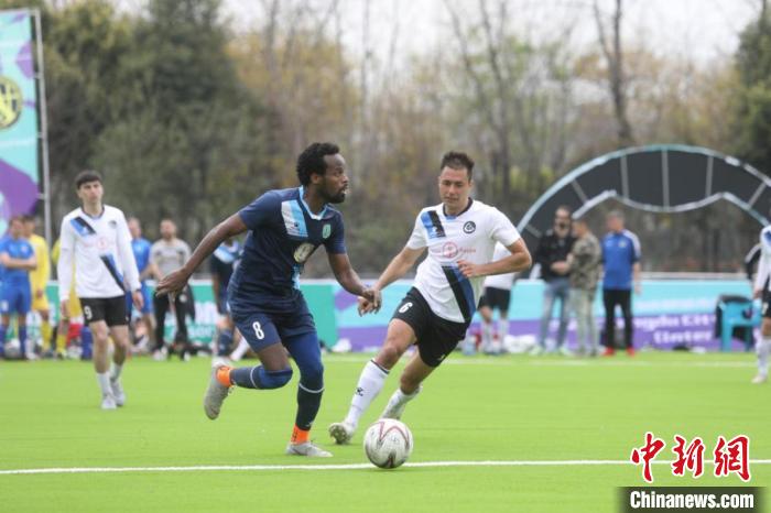 外國足球愛好者在成都綠茵上飛馳。 成都市足球協會供圖