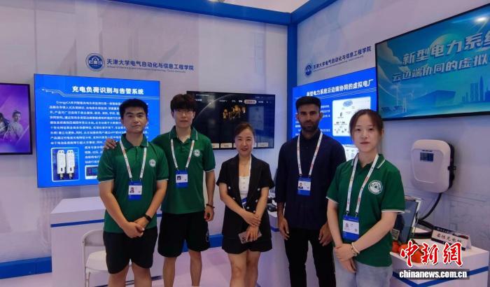 2024年6月,世界智能產業博覽會期間,穆罕默德·沙拉爾與導師和實驗室同學一起參與相關科研成果展陳工作。(天津大學 供圖)