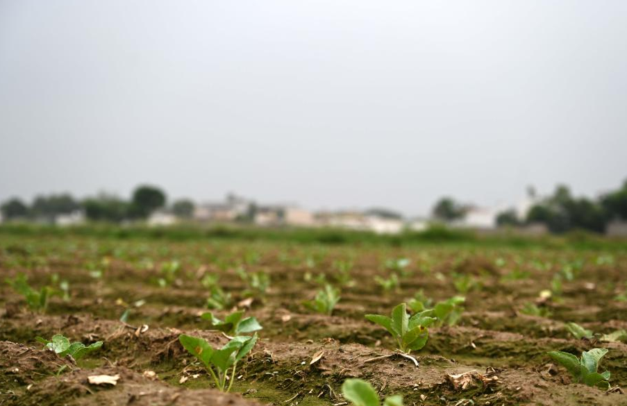 巴基斯坦旁遮普省的阿托克區土地里正在生長的中國花椰菜幼苗。(圖片來源:新華社)
