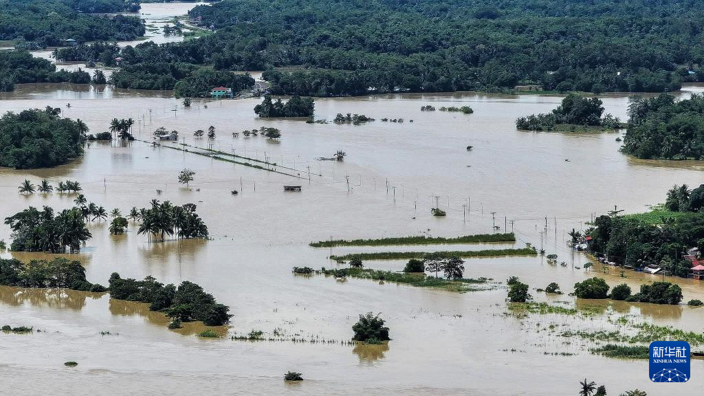 這是10月19日在菲律賓卡皮斯省拍攝的被洪水淹沒的道路。新華社發(西米沙鄢區公共工程與公路部供圖)