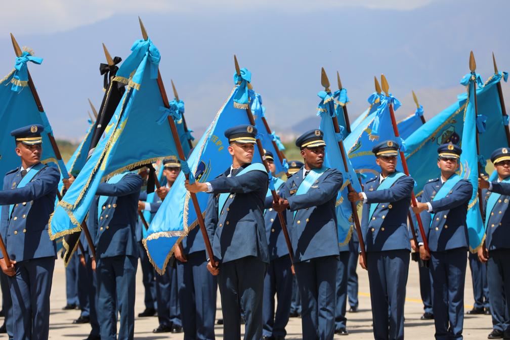 11月27日,在委內瑞拉馬拉凱市的解放者空軍基地,空軍部隊軍人列隊參加空軍成立105周年紀念活動。新華社發(委內瑞拉國防部供圖)
