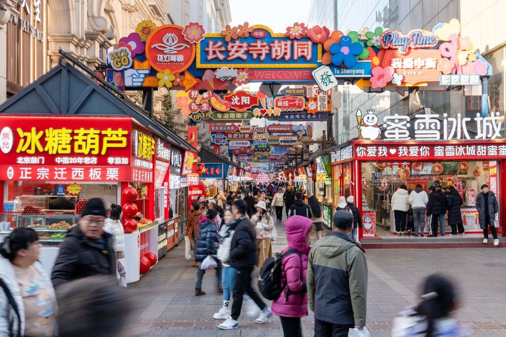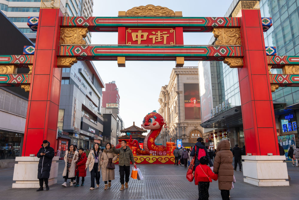 2025年1月12日,游客們在沈陽沈北新區(qū)稻夢小鎮(zhèn)觀看焰火表演。