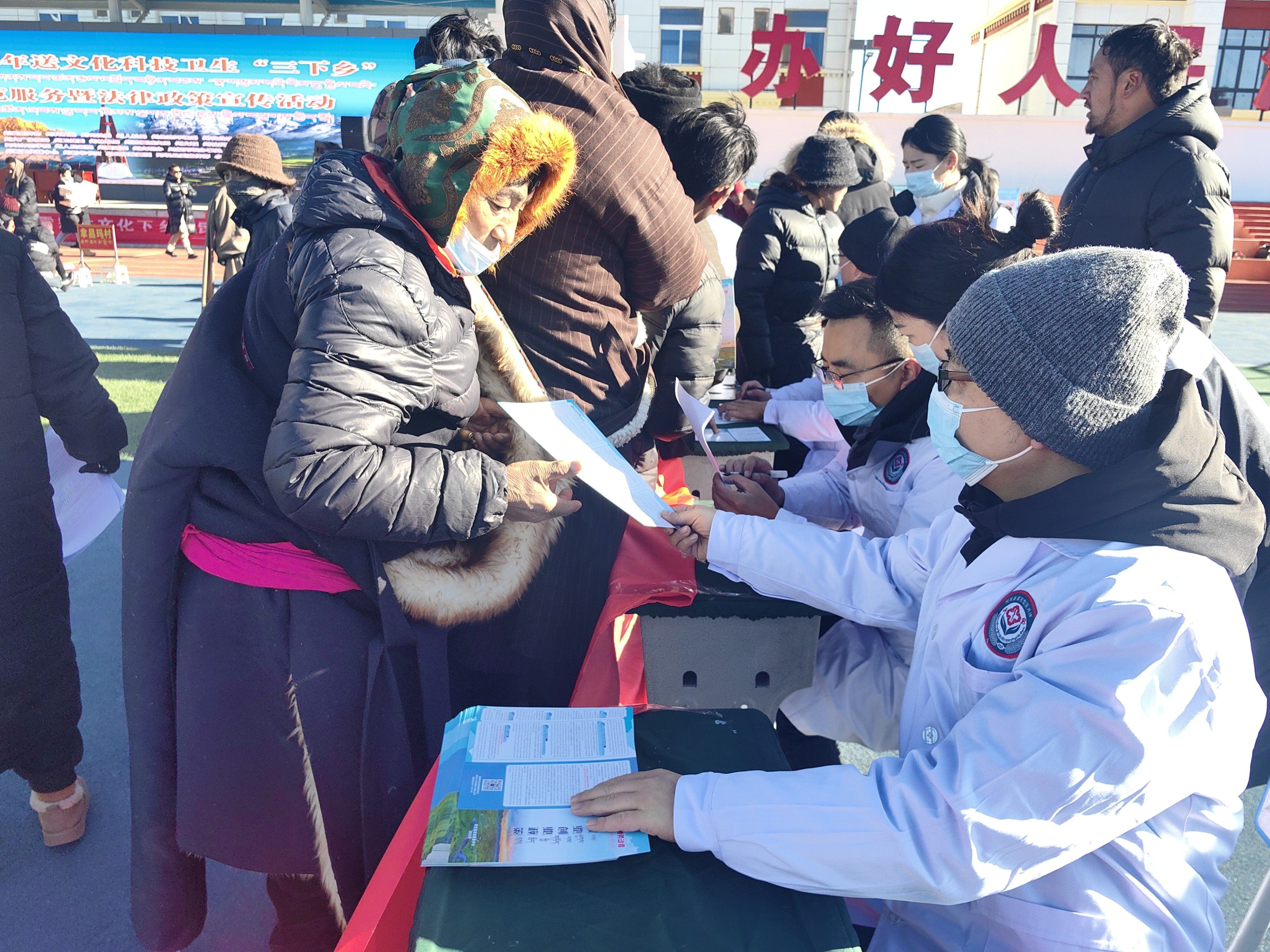 賈洛鎮平均海拔3500米以上,目前最低氣溫達-17℃,氣候干燥、含氧量極少。在義診活動中,醫療專家們不畏高寒和缺氧,為群眾提供了專業細致的診療服務,開展血壓、血糖檢測、心肺聽診等常規檢查。對于一些疑難重癥患者,醫療團隊還進行了詳細的會診,提出了治療方案和手術預約建議。同時,醫療專家們還針對藏區常見的疾病,如高原病、呼吸系統疾病等,進行重點講解和防治指導,幫助他們更好地了解疾病預防和健康保健知識。據統計,此次義診活動共接診患者300余人,免費提供價值2萬元的藥品,并發放健康宣傳資料300余份。