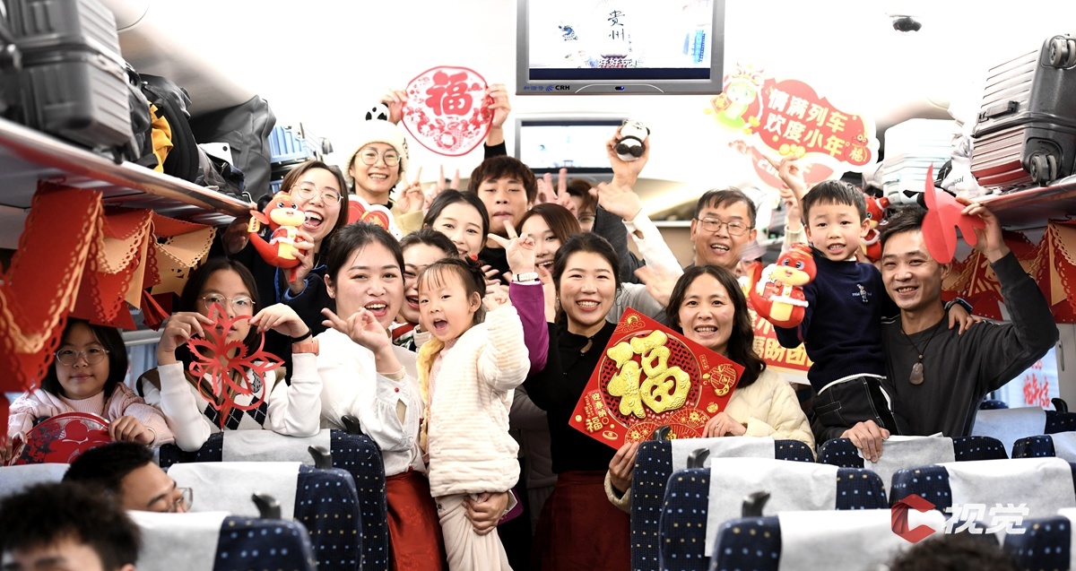 1月22日是農(nóng)歷臘月二十三,這一天是北方傳統(tǒng)的小年,一場溫馨且別開生面的小年民俗活動在成都東開往黃龍九寨的C5792次列車上歡樂上演。“今天乘坐動車回家,準(zhǔn)備過年。一上車就看到車廂內(nèi)的裝飾十分喜慶,感覺一下就有了過年的氛圍,真的很開心。”旅客田慶紅高興地說道。