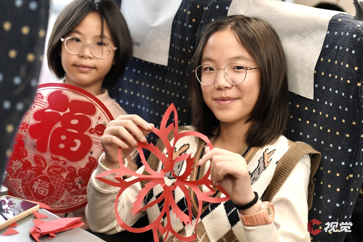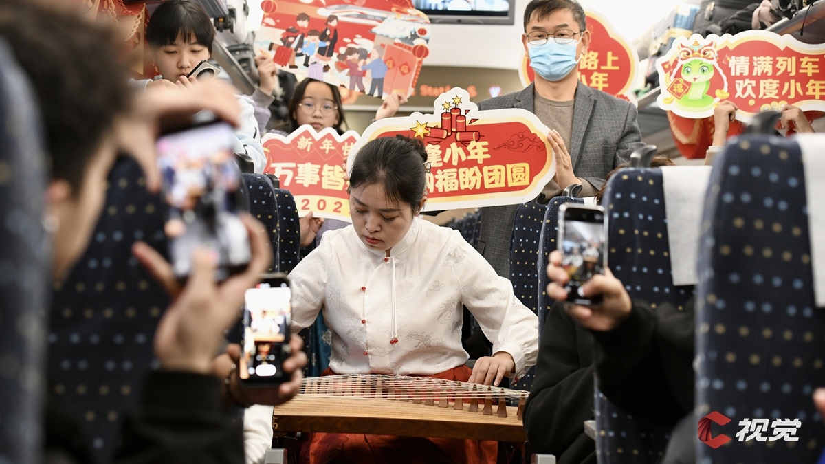 據(jù)了解,今年是川青鐵路鎮(zhèn)江關(guān)至黃勝關(guān)開通運營后的首個春運,也是川青鐵路動車組列車貫通運營后的首個春運。為此,成都客運段旅游車隊提前籌備部署,在車廂內(nèi)掛燈籠、貼窗花、貼“福”字、擺放蛇年吉祥物,并邀請川劇演員、魔術(shù)師、茶藝師等上車與旅客進(jìn)行互動,不僅讓旅客眼前一亮,也激發(fā)了乘車孩子的好奇心,讓列車上充滿了歡聲笑語。