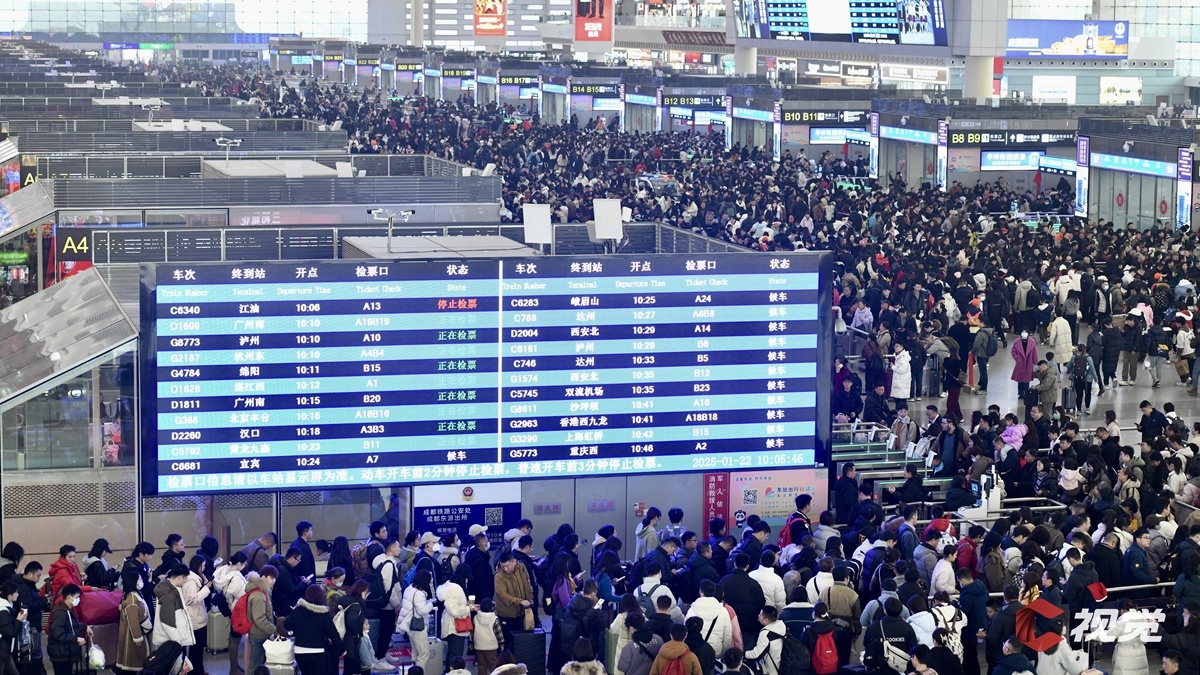 1月22日,成都東站人流如織。臨近春節(jié),這里每日的人流量也越來越大。