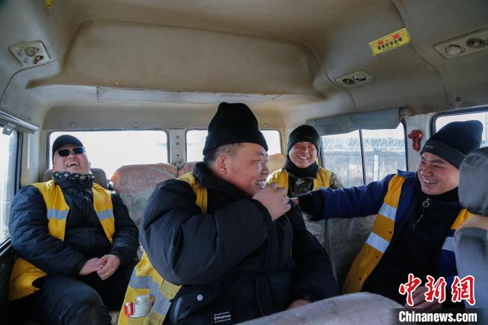 1月22日,中國北方小年,青藏集團公司德令哈工務段關角隧道工區“00后”職工郝斌(前)和工友們合影。中新社記者 馬銘言 攝