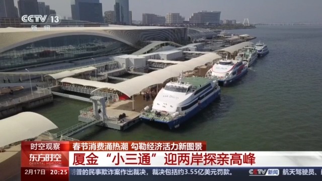 作為兩岸最大的海上客運航線,廈金航線每天有16個往返船班,航程只要半個小時,成為臺灣同胞往返兩岸的“黃金通道”。春節(jié)假期以來,廈金“小三通”航線的旅客量穩(wěn)步增長。