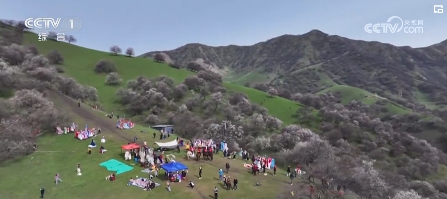 在天山北坡的新源縣吐爾根鄉,遠近聞名的野杏溝進入盛花期。遠處雪山綿延、近處春意盎然,吸引了全國各地的游客前來“打卡”。