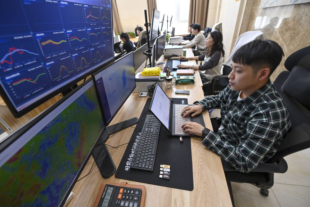 在位于山西省太原市小店區(qū)的晉控電力一家公司內(nèi),電力交易員正在工作(4月1日攝)。新華社記者 楊晨光 攝