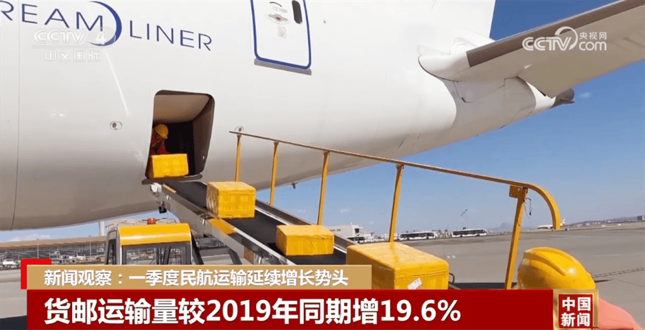 貨運方面,全行業一季度共完成貨郵運輸量200.7萬噸,為歷年一季度貨運量最高值,同比增長34.4%,較2019年同期增長19.6%。其中,國內航線較2019年同期增長8.2%,國際航線較2019年同期增長43.6%。