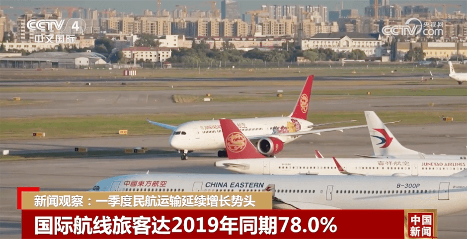 據中國民航局消息,2024年一季度,民航運輸生產開局良好,旅客運輸量和貨郵運輸量均創下歷年一季度最高值。全行業共完成運輸總周轉量同比增長45.6%,較2019年同期增長12.9%。