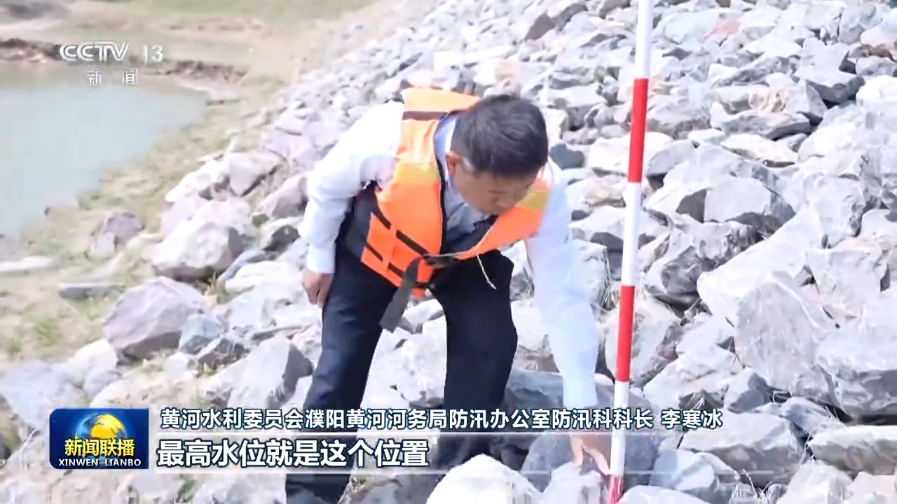 黃河水利委員會濮陽黃河河務局防汛辦公室防汛科科長 李寒冰:(過去)黃河河道淤積十分嚴重,最高洪水位接近壩頂了。(現在)河道泥沙少了3米多,最高水位就是這個位置,從這個位置向上,就是我們調水調沙調出來的安全空間。
