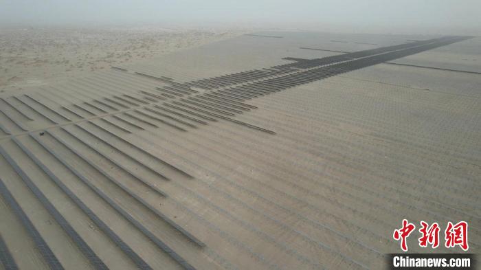 截至3月底,中電建25萬千瓦光伏項目已完成光伏板基樁的建設和第一期5萬余塊光伏板的安裝。今年6月,這里將建成一個占地約7000畝、年發電量4.14億千瓦時的光伏基地,并配套建設一座220千伏升壓站,通過“光伏+治沙”筑牢生態防線。