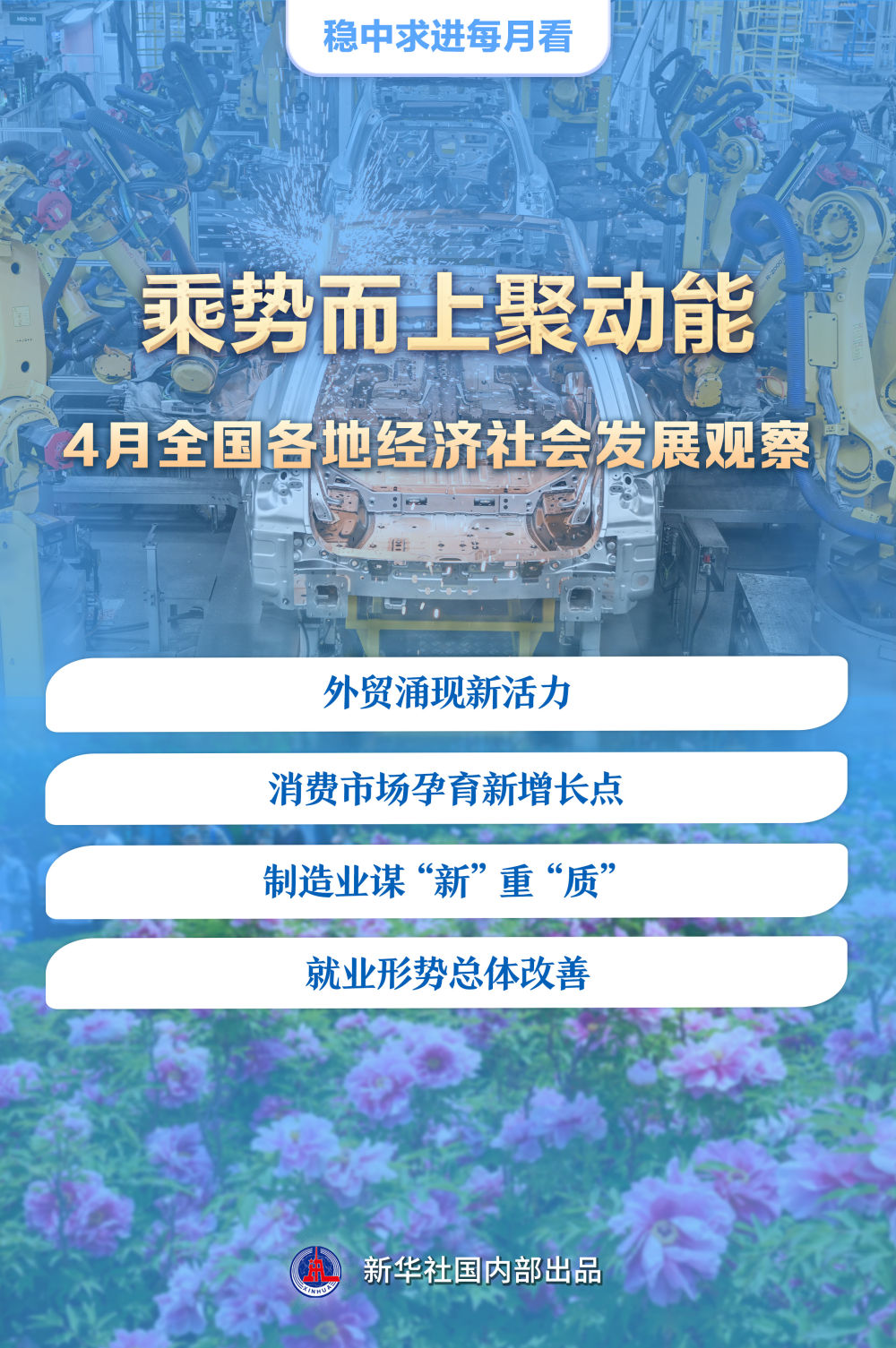 春意盎然育生機(jī)。一季度經(jīng)濟(jì)數(shù)據(jù)出爐釋放積極信號(hào),消費(fèi)市場(chǎng)亮點(diǎn)紛呈,經(jīng)濟(jì)社會(huì)發(fā)展對(duì)就業(yè)的帶動(dòng)效應(yīng)逐步顯現(xiàn)……今年4月,全國(guó)各地真抓實(shí)干,乘勢(shì)而上,進(jìn)一步鞏固和增強(qiáng)經(jīng)濟(jì)回升向好態(tài)勢(shì)。