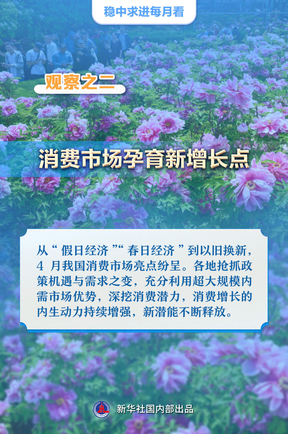 【記者觀察】從“假日經(jīng)濟(jì)”“春日經(jīng)濟(jì)”到以舊換新,4月我國(guó)消費(fèi)市場(chǎng)亮點(diǎn)紛呈。各地?fù)屪フ邫C(jī)遇與需求之變,充分利用超大規(guī)模內(nèi)需市場(chǎng)優(yōu)勢(shì),深挖消費(fèi)潛力,消費(fèi)增長(zhǎng)的內(nèi)生動(dòng)力持續(xù)增強(qiáng),新潛能不斷釋放。