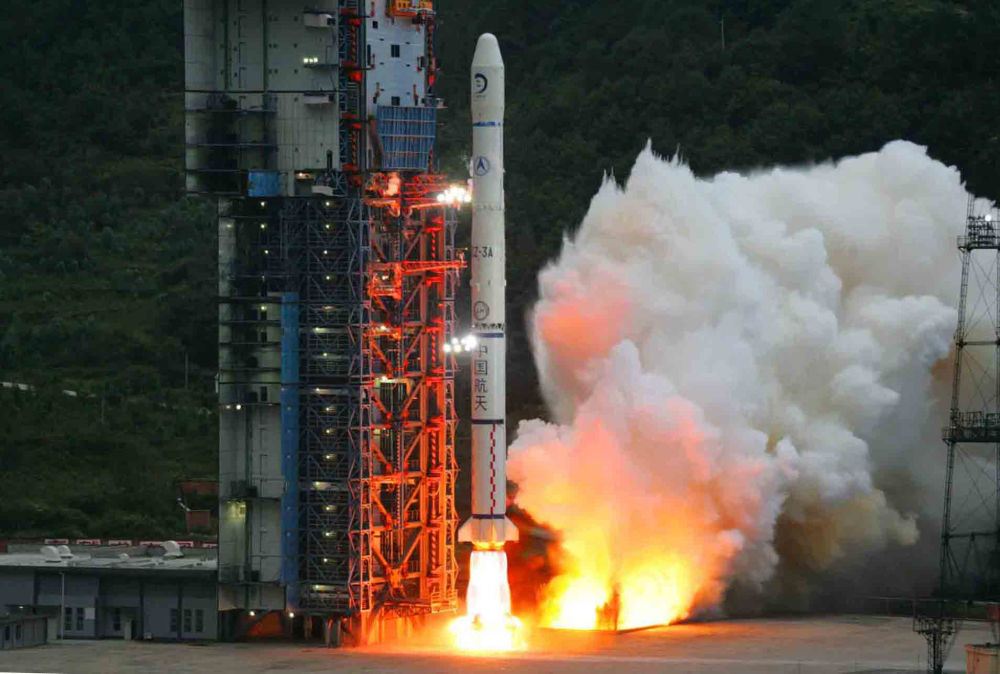2007年10月24日18時05分,搭載著我國首顆探月衛星嫦娥一號的長征三號甲運載火箭在西昌衛星發射中心三號塔架點火發射。新華社記者 李剛 攝