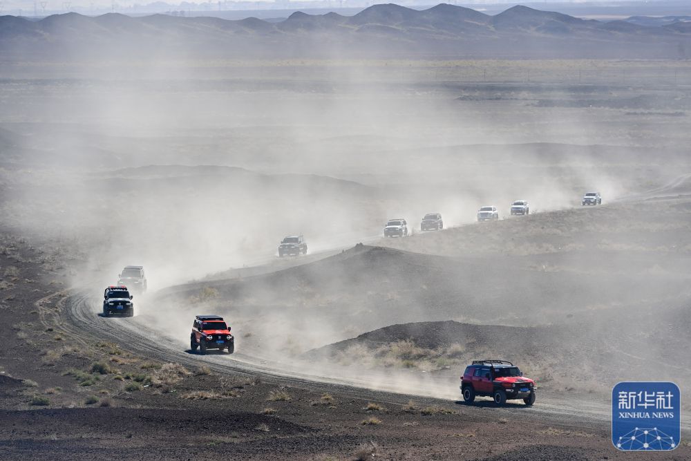 在新疆克拉瑪依市烏爾禾區,車友駕駛越野車穿越無人區(5月2日攝)。