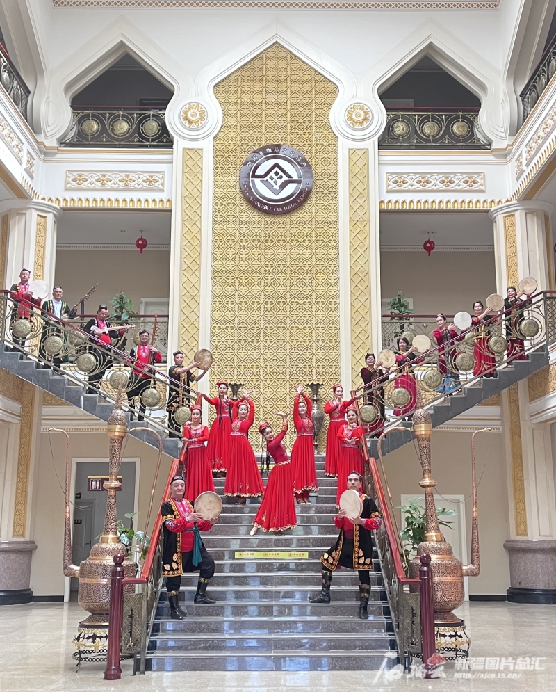 在哈密市非物質文化遺產保護中心,回城鄉的傳承人們和當地演員進行哈密木卡姆表演。石榴云/新疆日報記者 王晶晶攝