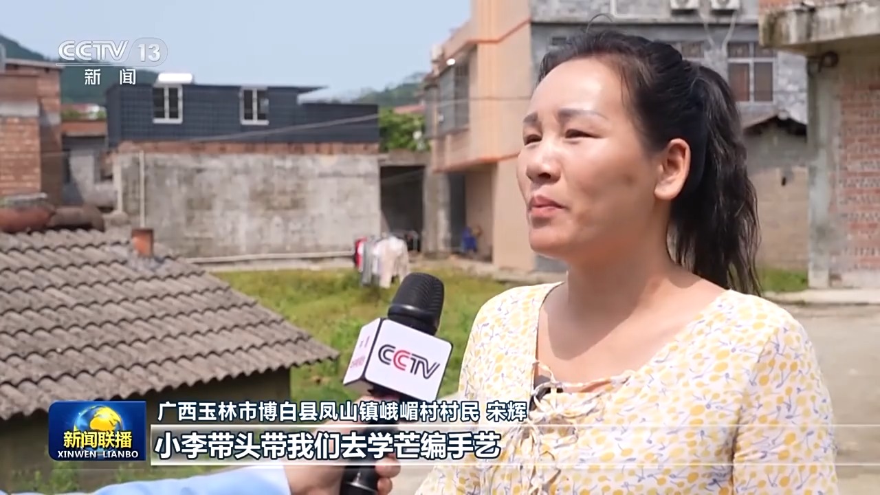 廣西玉林市博白縣鳳山鎮峨嵋村村民 宋輝:小李帶頭帶我們去學芒編手藝,幫我們找訂單,以前楊梅下了市,我們基本也沒什么能干的了,現在都有點忙不過來。