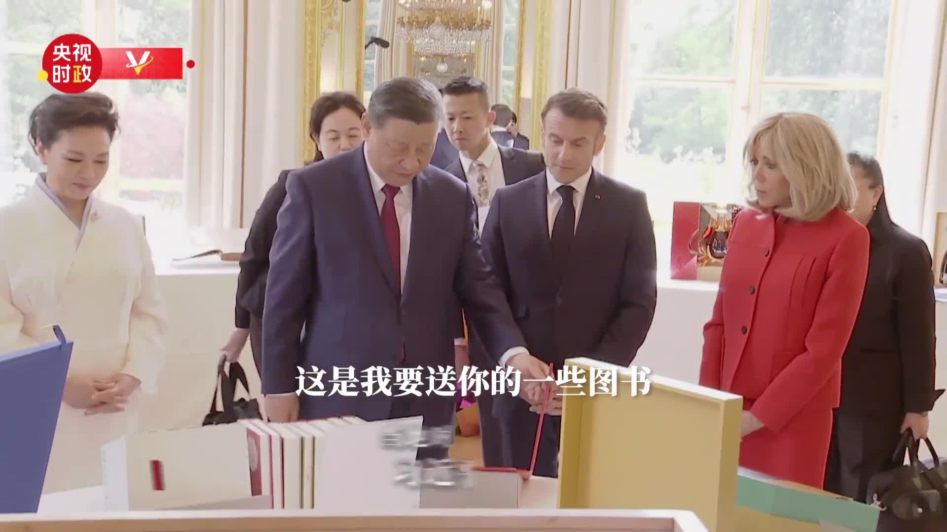 “這是我要送你的一些圖書,都是中國翻譯的法國小說,中文的法國小說。”習近平主席走到一排書籍面前,微笑著說。