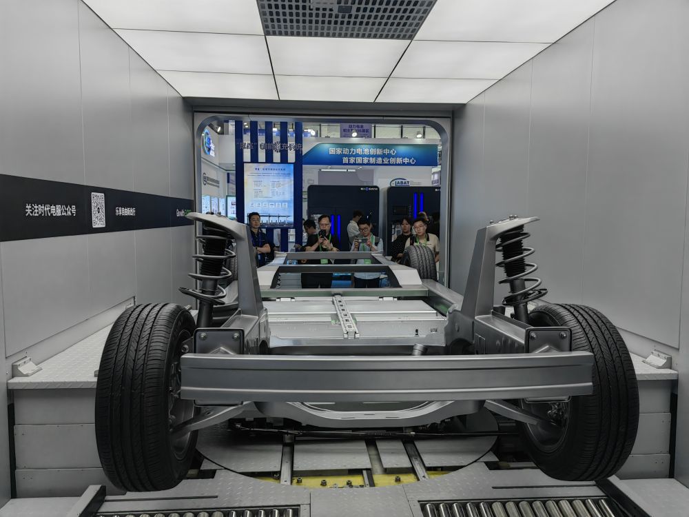 這是在四川省宜賓市舉行的2023世界動力電池大會上展示的新能源汽車換電系統(2023年6月9日攝)。新華社記者 胡旭 攝