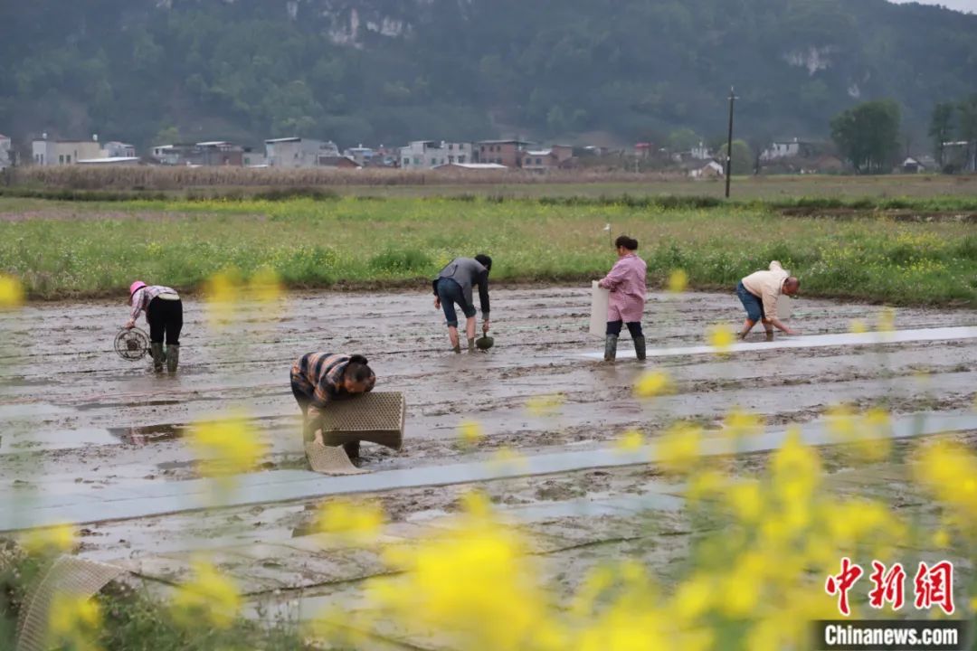 2024年3月20日,廣西柳州農(nóng)戶在春分節(jié)氣搶抓時間開展育秧勞作。湯曉逵 攝