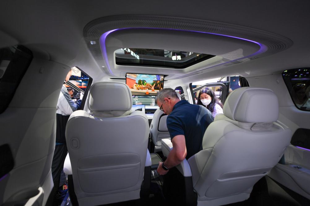 在北京中國國際展覽中心順義館舉行的2024北京車展上,參觀者在小鵬汽車展區體驗小鵬X9新能源汽車(2024年4月25日攝)。新華社記者鞠煥宗攝