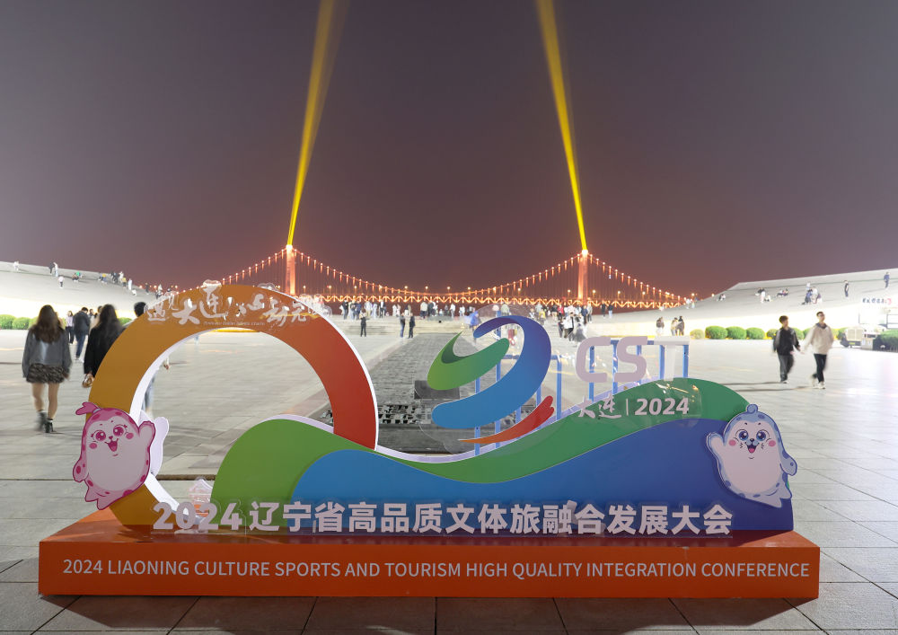 這是在遼寧省大連市星海廣場拍攝的“2024遼寧省高品質文體旅融合發展大會”的展板(2024年5月23日攝)。 新華社記者 李鋼 攝