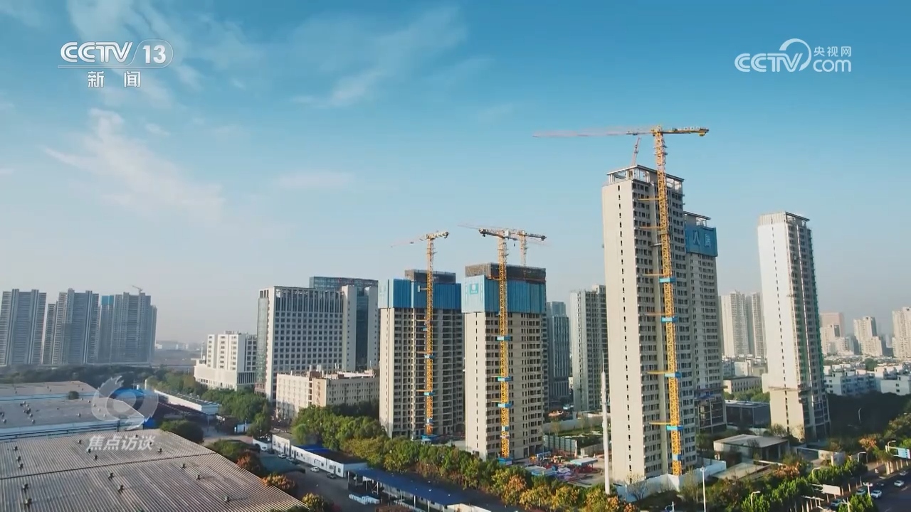 在湖北一家工廠,標準化施工構件由工廠生產交付后,再由高空造樓機像拼積木一樣,將它們快速精準吊裝。這樣裝配式一體化的施工方式,能讓單棟樓的總工期節約近兩個月。
