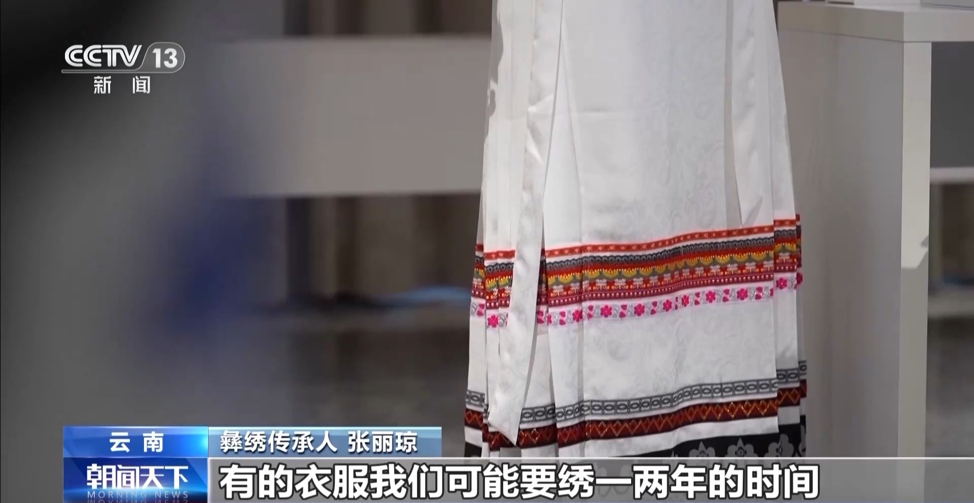 彝繡傳承人 張麗瓊:有的衣服我們可能要繡一兩年的時間。我們的彝族服飾,一定是有收藏價值、欣賞價值、藝術(shù)價值,它是融合為一體的。