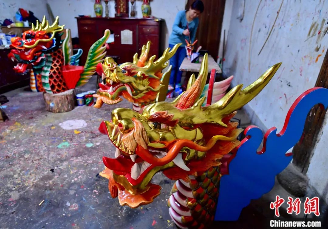 在方莊村的一家龍頭制造廠內,正在制作中的各式龍頭。龍頭代表著自己所屬村落的信仰和圖騰,因此在龍頭樣式的選擇上,每個客戶都不盡相同。中新社記者 張斌 攝