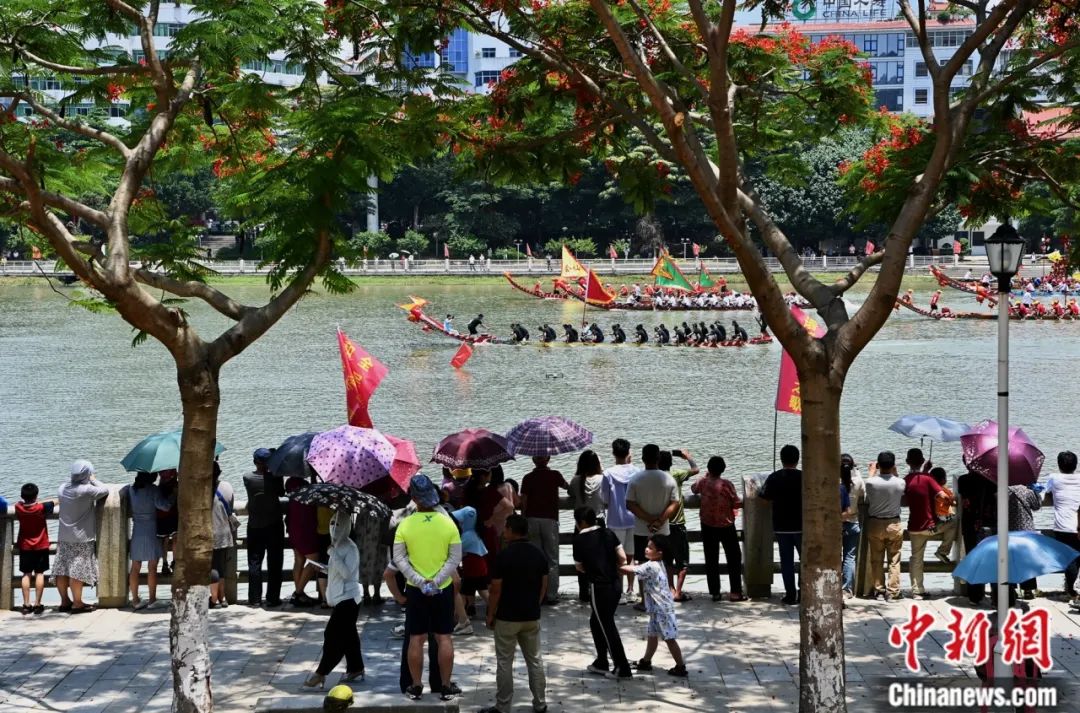 中華龍舟大賽在福州浦下河龍舟池舉行,吸引大批市民圍觀。中新社記者 王東明 攝