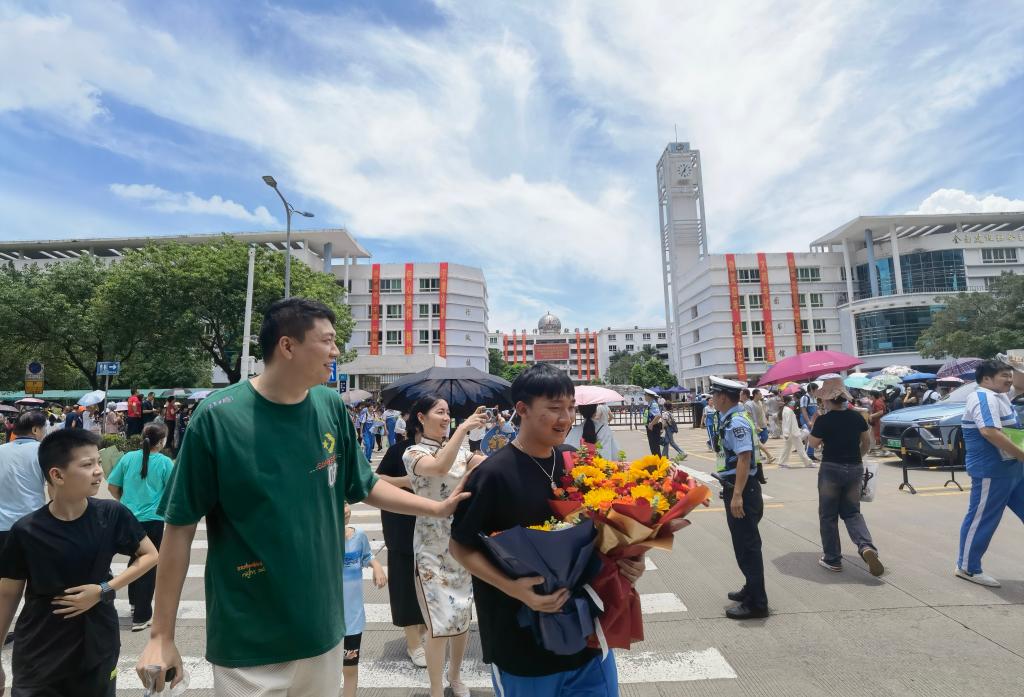 9日下午6點15分,最后一門生物學考完后,廣東2024年高考順利結束。在廣州市第六中學考場門口,一位父親手持親手做的向日葵迎接兒子,表達“一舉奪魁、金榜題名”的美好愿望;一位母親對兒子說,不管考得如何,接下來是新的開始。