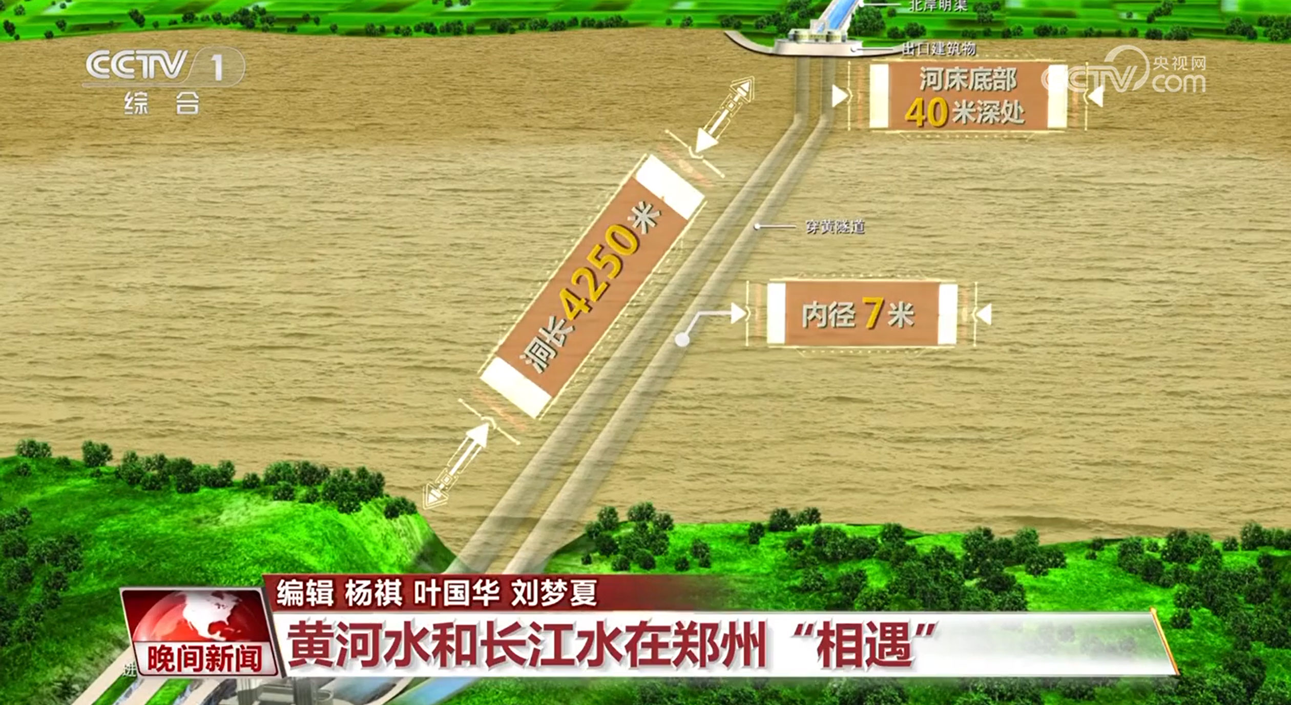 來自丹江口水庫的長江水自渠首出,一路自流向北,黃河成為阻礙南水北去的天然屏障。為了解決這個問題,“穿黃工程”由此誕生。“穿黃”顧名思義就是“穿越黃河”,黃河河床下復雜的地質(zhì)條件,注定了穿黃隧道不同于一般的交通隧道,也造就了隧道非同尋常的構(gòu)造。南水北調(diào)工程建設者在鄭州花園口西黃河河床底部40米深處開鑿兩條隧道,穿黃隧道為雙線有壓輸水隧道,單個洞長4250米,內(nèi)徑7米,這樣的內(nèi)徑可以滿足洞內(nèi)跑汽車。有了“穿黃工程”,北上的長江水通過兩條穿黃隧道與黃河立體交叉相遇,平時,黃河水在上面流,南水北調(diào)的長江水在河底隧道中流過,兩者上下而過,猶如一條巨龍在黃河之下隱去了身影。