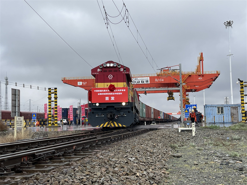 4月26日,烏魯木齊—薩萊諾中歐班列順利開行,這標(biāo)志著新疆中歐班列境外南通道跨“兩?!本€路成功運行。吳奇攝