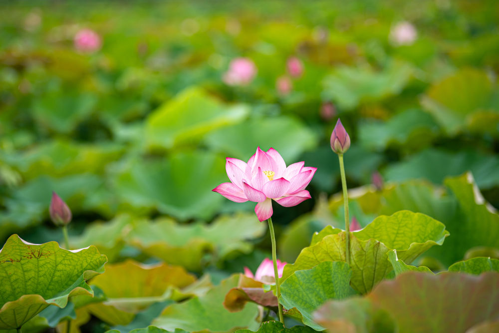 這是6月20日拍攝的寧波市江北區外漕村百畝荷田內的荷花。新華社記者 江漢 攝