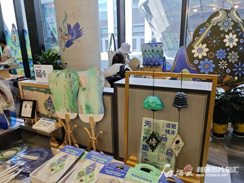 今年4月,在北京市舉辦的“保護與傳承——中國石窟寺書畫藝術(shù)展”,是全國首個以石窟寺為主題的書畫藝術(shù)展,吸引大量觀眾一飽眼福。來自新疆博物館的“天宮市集”系列龜茲藝術(shù)文創(chuàng)產(chǎn)品,吸引了眾多觀眾。石青色的精致絲巾、菱形格造型的香片,以及運用琺瑯彩技法做出的伎樂飛天形象掛件……大量“龜茲風(fēng)”文創(chuàng)產(chǎn)品展示出龜茲文化的獨特魅力。游客王興全對此贊不絕口:“這是我第一次見到有關(guān)龜茲壁畫的文創(chuàng)產(chǎn)品,真的讓我眼前一亮。這些產(chǎn)品的色彩搭配非常考究,既有古典的韻味,又充滿了現(xiàn)代感。”