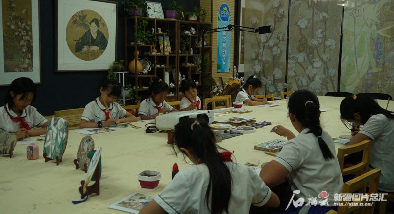 遠在千里之外,也有如買買提兄弟般鐘情龜茲藝術(shù)的人。在烏魯木齊職業(yè)大學(xué)的羅皋毅工藝美術(shù)技能大師工作室里,幾名師生正全神貫注地進行泥板制作、起稿、上色、描邊等一道道精細工序,工作室中彌漫著專注的氛圍。