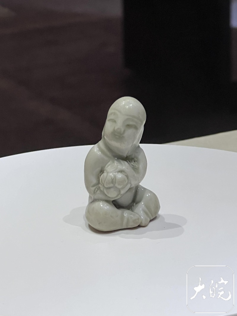 藏于淮北市博物館的北宋景德鎮窯青白釉抱鞠童瓷塑