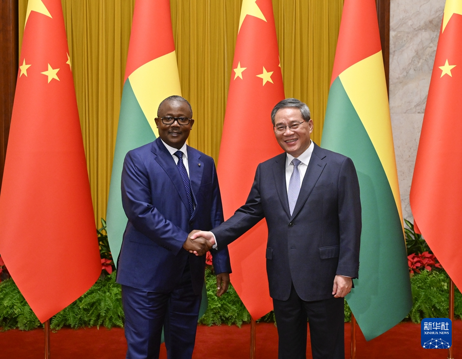 7月10日上午,國務院總理李強在北京人民大會堂會見來華進行國事訪問的幾內亞比紹總統恩巴洛。新華社記者 殷博古 攝