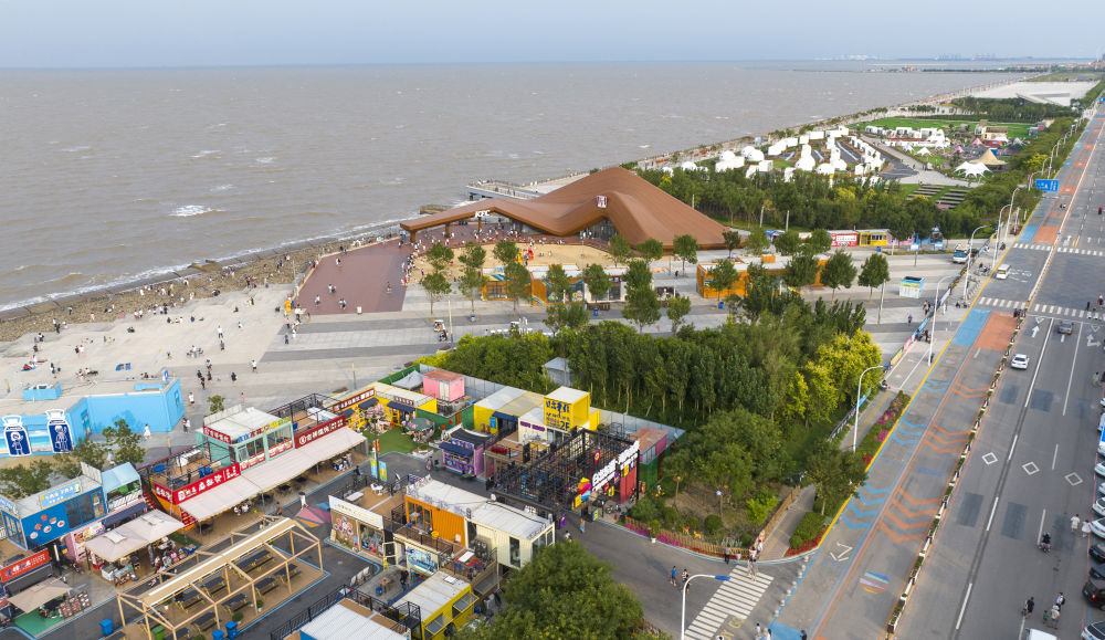 圖為6月29日拍攝的天津市濱海新區東疆親海公園一景(無人機照片)。新華社記者 趙子碩 攝