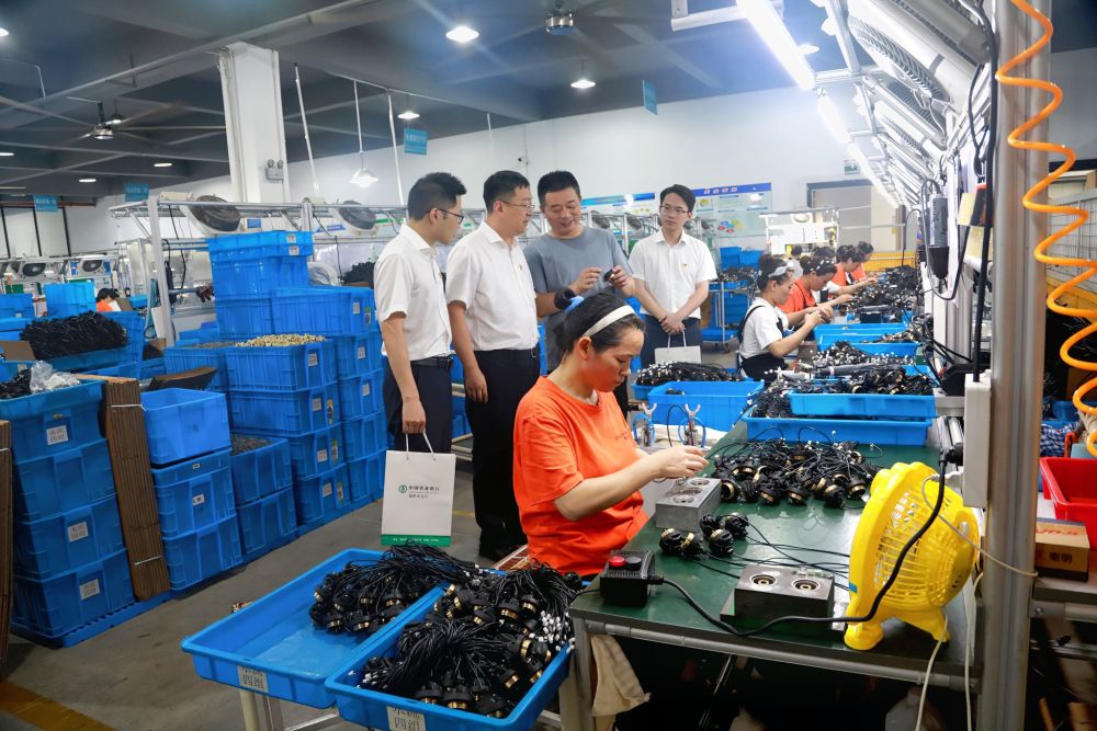 7月12日,在位于浙江溫嶺的愛科賽智能科技公司,農(nóng)行溫嶺支行工作人員開展金融問需服務。新華社發(fā)(程蘊 攝)