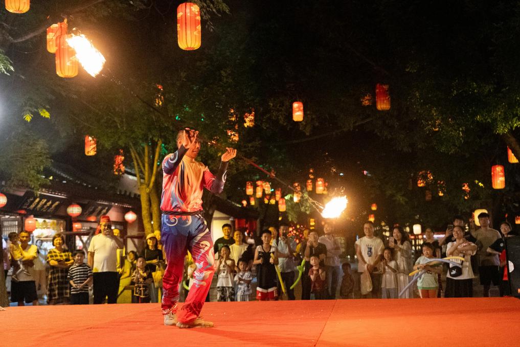 游客在開封清明上河園景區內觀看民俗表演(6月27日攝)。新華社發(受訪者供圖)