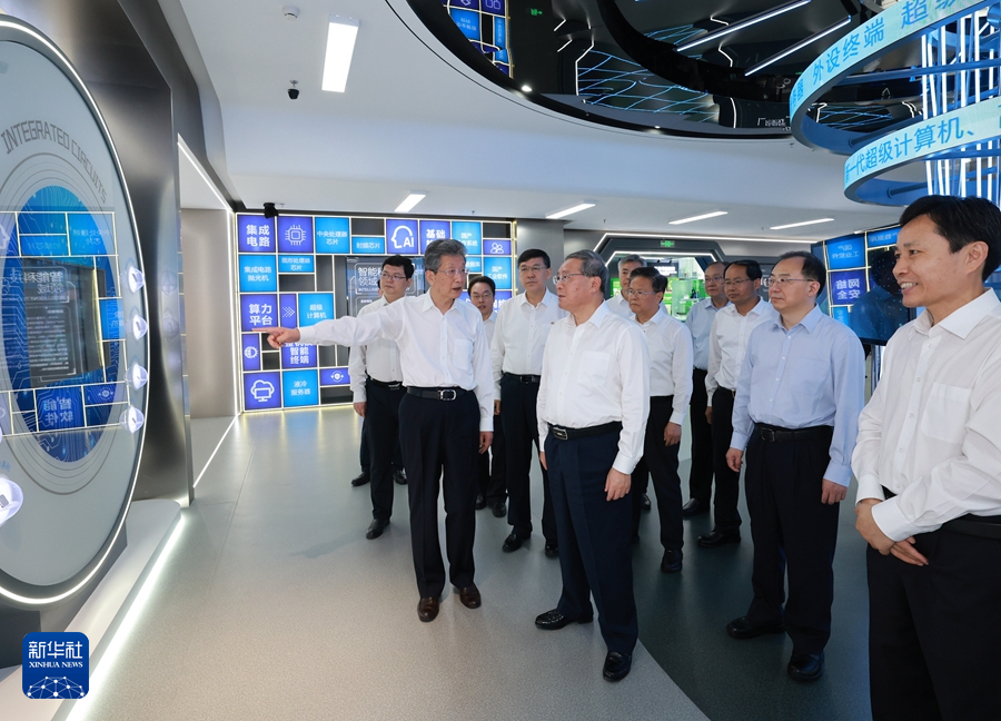 7月22日,中共中央政治局常委、國務院總理李強在天津調研。這是李強在天開高教科創園核心區聽取科創園建設運營介紹。新華社記者 王曄 攝