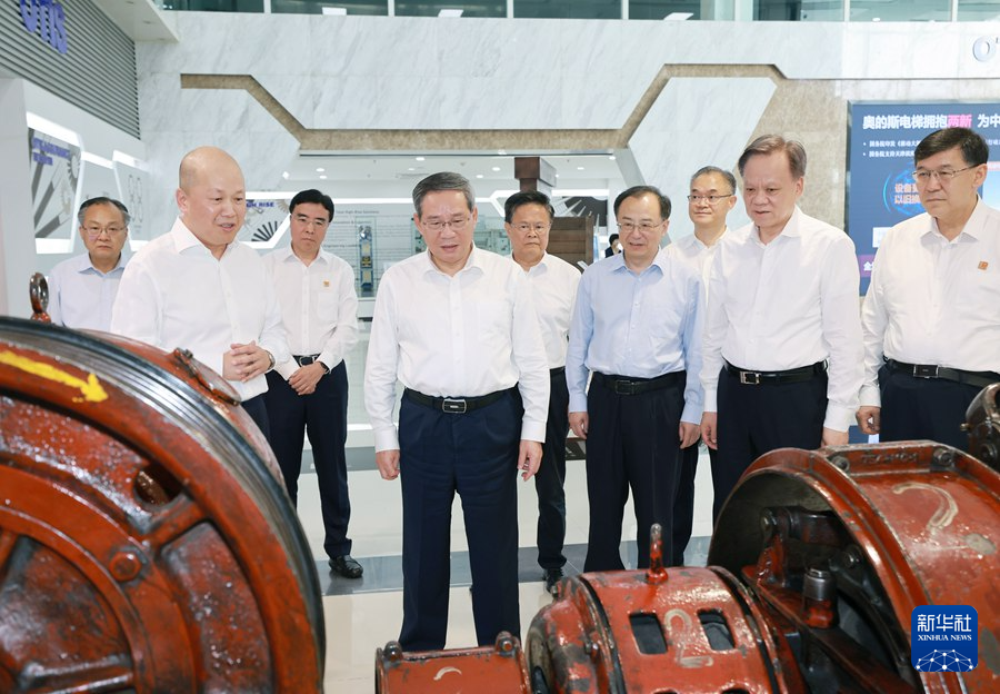 7月22日,中共中央政治局常委、國務院總理李強在天津調研。這是李強在位于濱海新區的奧的斯電梯(中國)有限公司了解企業研發情況。新華社記者 王曄 攝