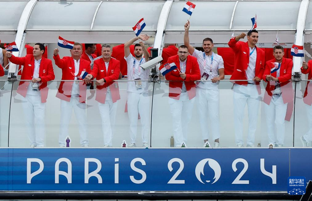 7月26日,克羅地亞體育代表團成員在開幕式上。新華社發(fā)(POOL照片/克洛達赫·基爾科因)pagebreak
