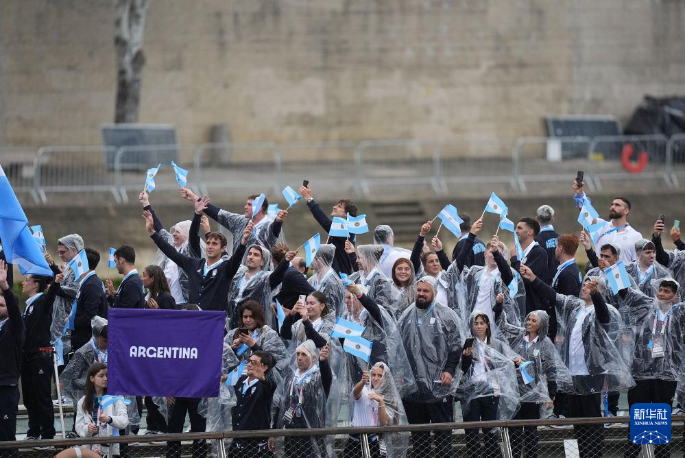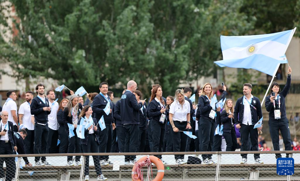 7月26日,阿根廷體育代表團成員在開幕式上。新華社記者 王東震 攝