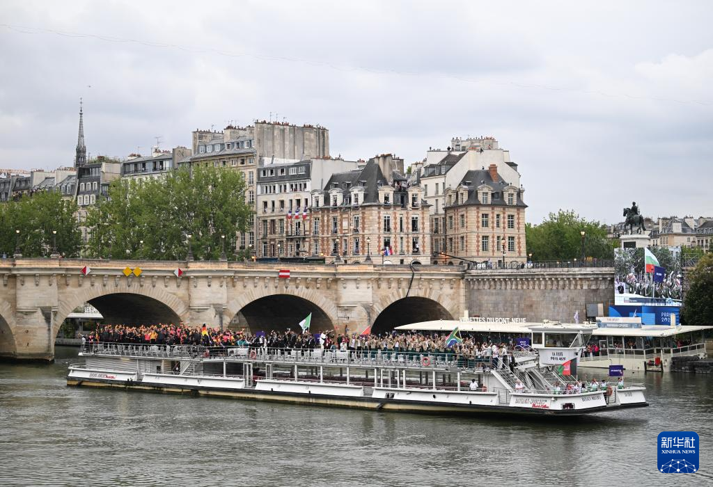 7月26日,各體育代表團在開幕式上,右側(cè)是巴黎圣母院。新華社發(fā)(POOL照片/丹·馬蘭)pagebreak