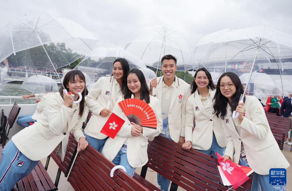 7月26日,中國香港體育代表團在開幕式上。新華社記者 呂小煒 攝